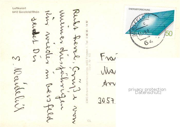 73208353 alte Postkarte Gersfeld Rhoen postalisch gelaufen Erhaltung siehe scans [NatalD47] KatCode: 11110006631010