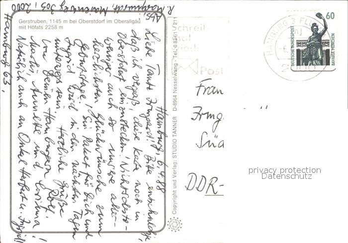 72543313 alte Postkarte Gerstruben mit Hoefats postalisch gelaufen Erhaltung siehe scans [WerneD78 kv016box] KatCode: 11110009780133