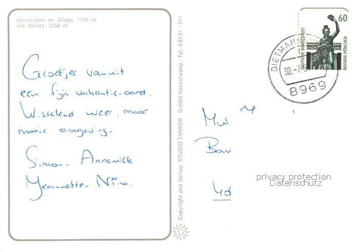 73306599 alte Postkarte Gerstruben mit Hoefats postalisch gelaufen Erhaltung siehe scans [WerneD78] KatCode: 11110009780133