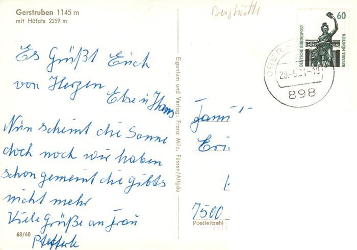 73932136 alte Postkarte Gerstruben Oberstdorf Berghuette Kapelle mit Hoefats postalisch gelaufen Erhaltung siehe scans [FriedD77] KatCode: 11110009780133