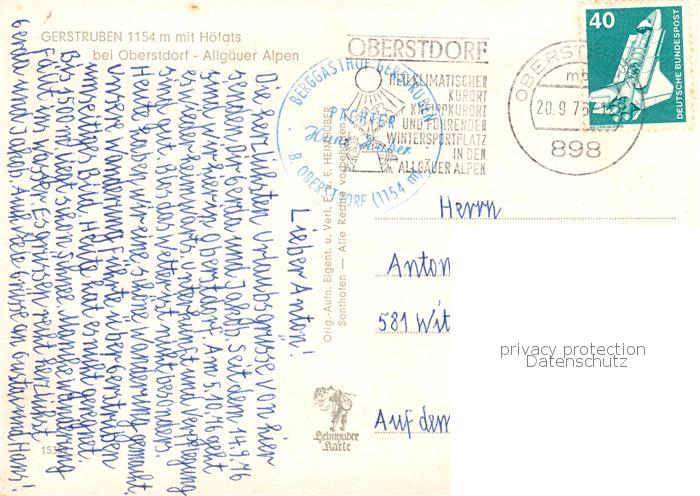 73813544 alte Postkarte Gerstruben Oberstdorf mit Hoefats postalisch gelaufen Erhaltung siehe scans [WerneD78] KatCode: 11110009780133