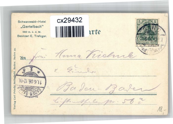 30924321 alte Postkarte Gertelbach Kurhaus Gertelbach Kuenstler St. Kern postalisch gelaufen KatCode: 11110008216008