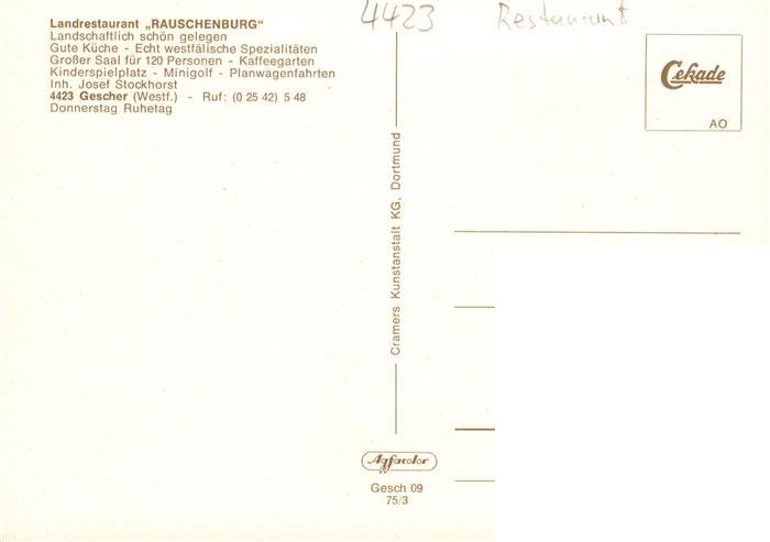 73894514 Gescher Landrestaurant Rauschenburg Gastraeume Kegelbahn Bar postalisch nicht gelaufen Erhaltung siehe scans [WerneD78] KatCode: 11110005554016