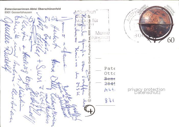 71947474 alte Postkarte Gessertshausen Ziesterzienserinnen Abtei Oberschoenenfeld Fliegeraufnahme postalisch gelaufen Erhaltung siehe scans KatCode: 11110009772148