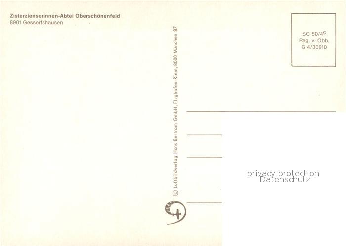 73085270 Gessertshausen Zisterzienserinnen Abtei Oberschoenenfeld Fliegeraufnahme postalisch nicht gelaufen Erhaltung siehe scans [FriedD77] KatCode: 11110009772148