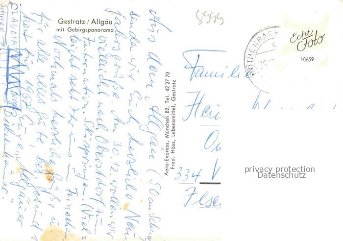 74101626 alte Postkarte Gestratz Fliegeraufnahme mit Gebirgspanorama postalisch gelaufen Erhaltung siehe scans [WerneD78] KatCode: 11110009776112