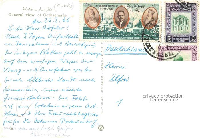 74010842 old postcard Gethsemane Gethsemani Israel General view postalisch gelaufen Erhaltung siehe scans [WerneD78] KatCode: 13080