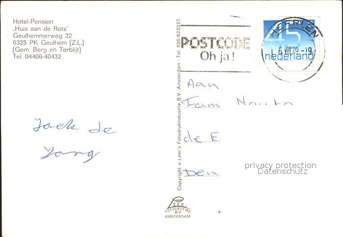 old postcard Geulhem Geulem Hotel Pension Huis aan Rots postalisch gelaufen Erhaltung siehe scans