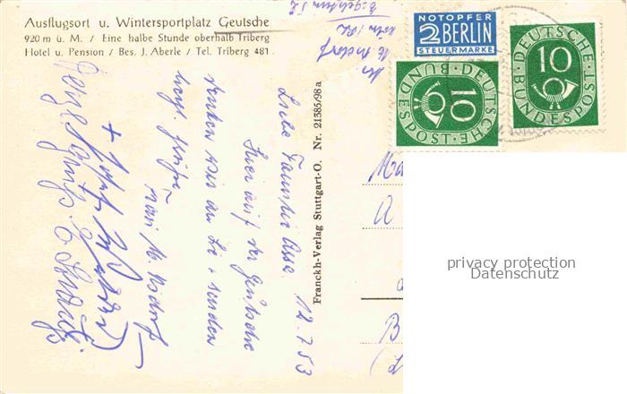 74095850 alte Postkarte Geutsche Triberg Schwarzwald BW Ausflugsort Wintersportplatz Hotel Pension postalisch gelaufen Erhaltung siehe scans [FriedD77] KatCode: 11110008326060