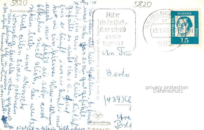 73704300 alte Postkarte Gevelsberg Gaststaette Forsthaus postalisch gelaufen Erhaltung siehe scans [LiesaD40] KatCode: 11110005954012