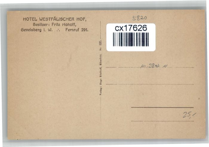30725140 Gevelsberg Hotel Westfaelischer Hof postalisch nicht gelaufen KatCode: 11110005954012