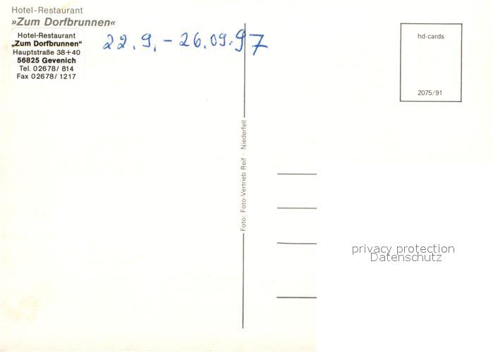 73543067 Gevenich Eifel Hotel Restaurant Zum Dorfbrunnen Landschaftspanorama postalisch nicht gelaufen Erhaltung siehe scans [FriedD77] KatCode: 11110007135034