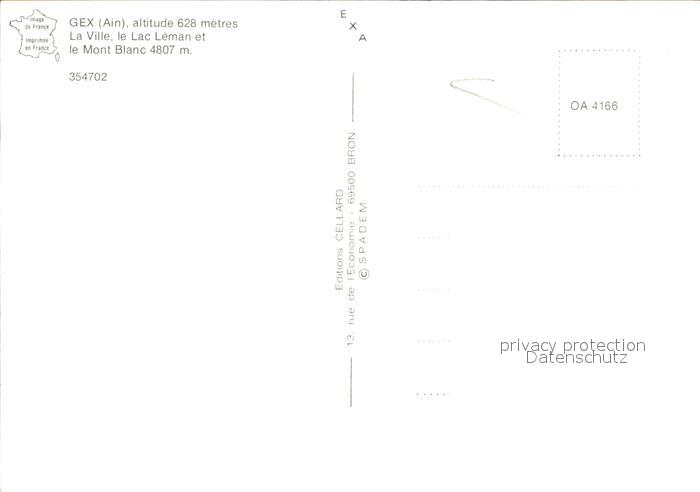 12598296 Gex Fliegeraufnahme avec Lac-Leman et Mont-Blanc postalisch nicht gelaufen Erhaltung siehe scans [LiesaD40] KatCode: 11170001301173