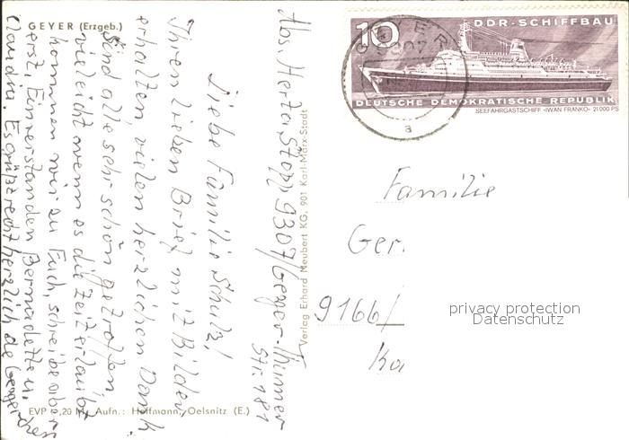 72343345 alte Postkarte Geyer Blick ueber die Stadt postalisch gelaufen Erhaltung siehe scans KatCode: 11110014171120