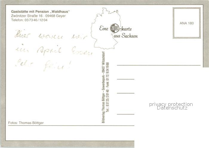 73658720 Geyer Gaststaette Pension Waldhaus Restaurantt Fremdenzimmer Waldhuette postalisch nicht gelaufen Erhaltung siehe scans [FriedD77] KatCode: 11110014171120