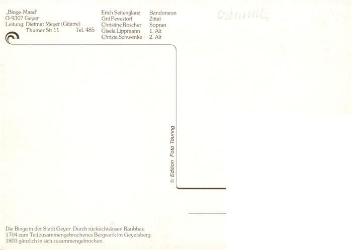 73923450 Geyer Heimatgruppe Binge Maad postalisch nicht gelaufen Erhaltung siehe scans [FriedD77] KatCode: 11110014171120