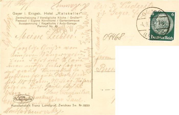 73958262 alte Postkarte Geyer Sachsen Markt mit Rathaus postalisch gelaufen Erhaltung siehe scans [FriedD77] KatCode: 11110014171120