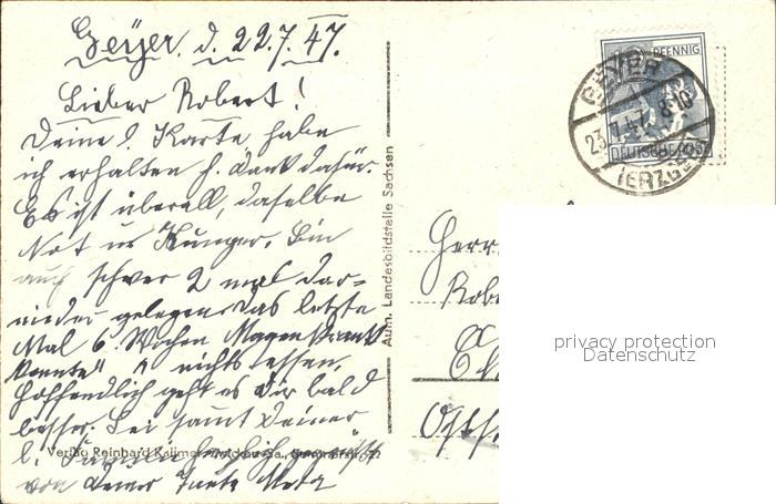 alte Postkarte Geyer Sankt Laurentiuskirche Wachtturm Rathaus postalisch gelaufen Erhaltung siehe scans