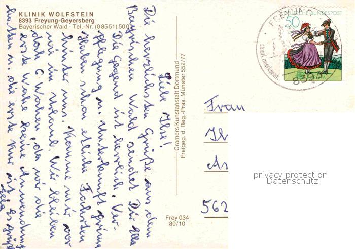 72835036 alte Postkarte Geyersberg Wald Klinik Wolfstein Fliegeraufnahme postalisch gelaufen Erhaltung siehe scans [FriedD77] KatCode: 11110009272118
