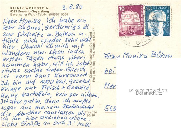 73774959 alte Postkarte Geyersberg Wald Klinik Wolfstein Fliegeraufnahme postalisch gelaufen Erhaltung siehe scans [WerneD78] KatCode: 11110009272118
