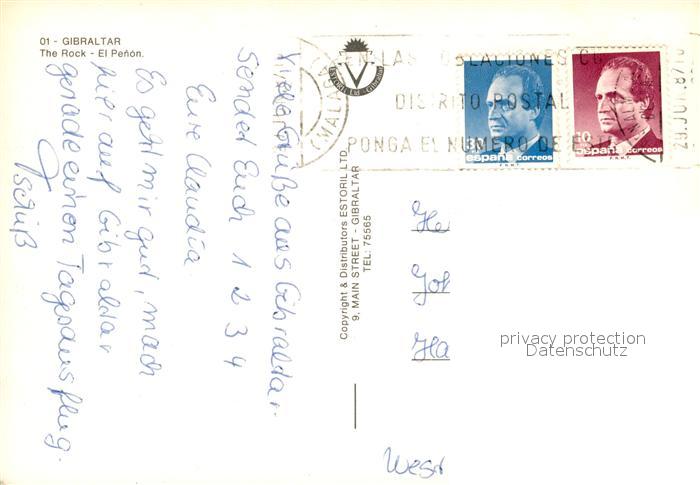 old postcard Gibraltar The Rock El Penon postalisch gelaufen Erhaltung siehe scans [WerneD78]