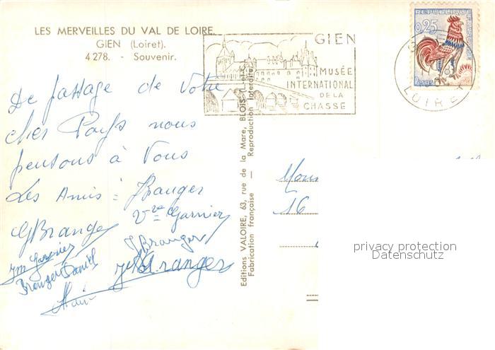 13640331 Gien 45 Chateau de la Loire Eglise Musee les quais Blason postalisch gelaufen Erhaltung siehe scans [FriedD77] carte postale Frie Katcode 11170045145155