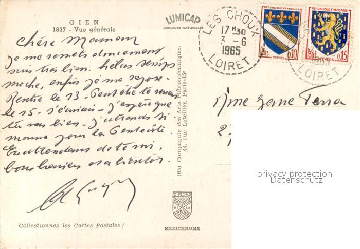 13640303 Gien 45 Pont sur la Loire Eglise postalisch gelaufen Erhaltung siehe scans [FriedD77] carte postale Frie Katcode 11170045145155