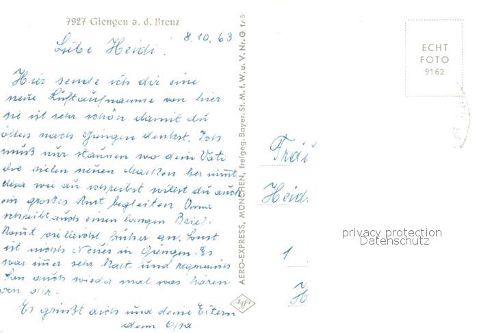 73851232 Giengen Brenz Fliegeraufnahme postalisch nicht gelaufen Erhaltung siehe scans [WerneD78] KatCode: 11110008135016