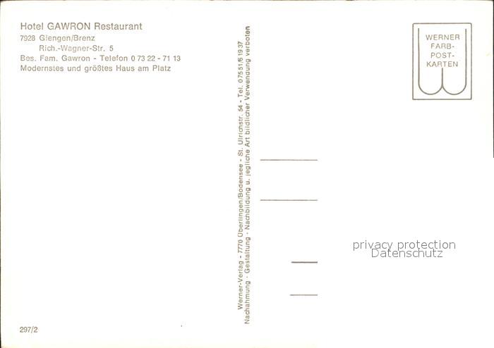 72232493 Giengen Brenz Hotel Gawron postalisch nicht gelaufen Erhaltung siehe scans KatCode: 11110008135016
