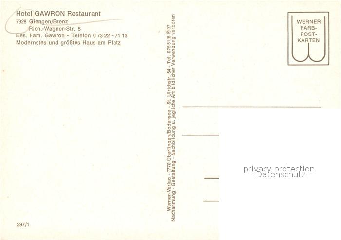 73867193 Giengen Brenz Hotel Gawron postalisch nicht gelaufen Erhaltung siehe scans [FriedD77] KatCode: 11110008135016