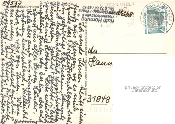73629525 alte Postkarte Giengen Brenz Motive Altstadt Fachwerkhaeuser Kirche Brunnen postalisch gelaufen Erhaltung siehe scans [FriedD77] KatCode: 11110008135016