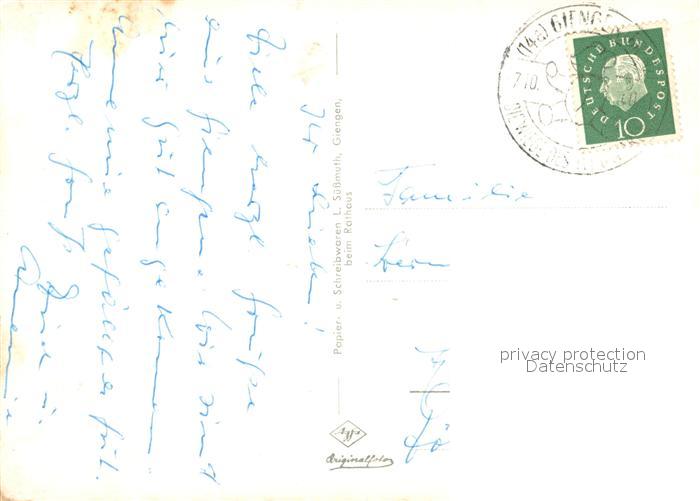 73629527 alte Postkarte Giengen Brenz Stadtansichten Freibad Turm Wappen postalisch gelaufen Erhaltung siehe scans [FriedD77] KatCode: 11110008135016