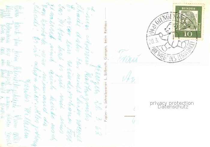 72745892 alte Postkarte Giengen Brenz Teilansichten mit Kirche ehemalige Reichsstadt Ruine Freibad postalisch gelaufen Erhaltung siehe scans [FriedD77] KatCode: 11110008135016