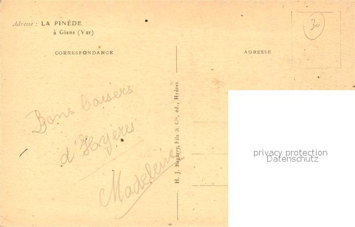 13484651 Giens Var La Pinède de la Plage d Hyeres postalisch nicht gelaufen Erhaltung siehe scans [FriedD77] KatCode: 11170083283069