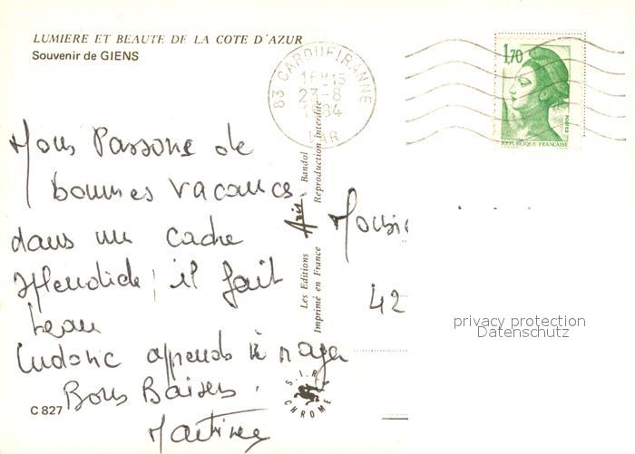 13561222 carte postale Giens Var postalisch gelaufen Erhaltung siehe scans [LiesaD40] KatCode: 11170083283069