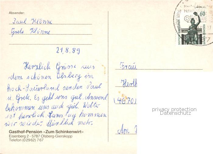 73865526 alte Postkarte Gierskopp Gasthof Pension zum Schinkenwirt Restaurant postalisch gelaufen Erhaltung siehe scans [FriedD77] KatCode: 11110005958036