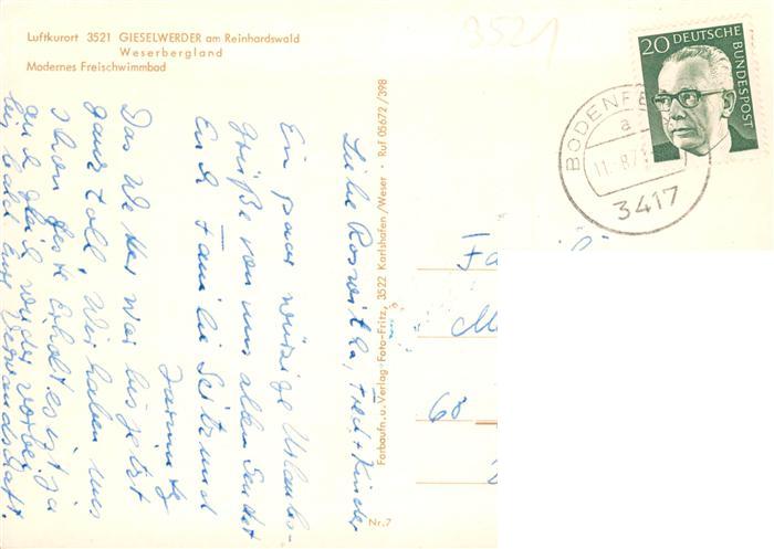 73935076 alte Postkarte Gieselwerder Freibad Liegewiese postalisch gelaufen Erhaltung siehe scans [FriedD77] KatCode: 11110006633021
