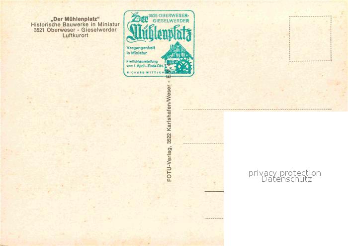 72929040 Gieselwerder Muehlenplatz Historische Bauwerke in Miniatur postalisch nicht gelaufen Erhaltung siehe scans [FriedD77] KatCode: 11110006633021