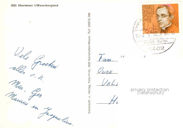 72729828 alte Postkarte Gieselwerder Teilansicht Stadttor Fachwerkhaus postalisch gelaufen Erhaltung siehe scans [AndreD76] KatCode: 11110006633021