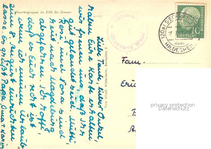 73712340 alte Postkarte Giesen Hildesheim Ehrenmal Giesener Wald postalisch gelaufen Erhaltung siehe scans [WerneD78] KatCode: 11110003254017