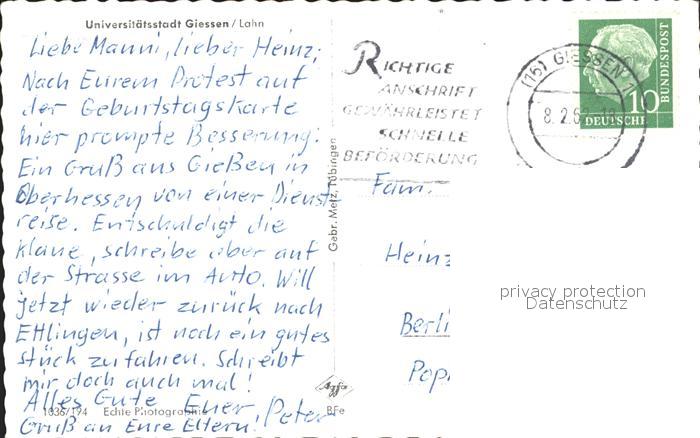 32184344 alte Postkarte Giessen Lahn postalisch gelaufen Erhaltung siehe scans KatCode: 11110006531005