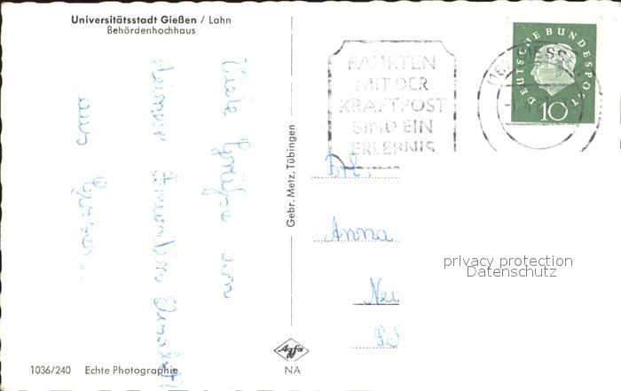 72045312 alte Postkarte Giessen Lahn Behoerdenhochhaus postalisch gelaufen Erhaltung siehe scans KatCode: 11110006531005