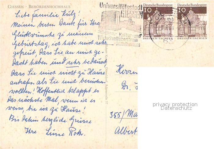 72797744 alte Postkarte Giessen Lahn Behoerdenhochhaus postalisch gelaufen Erhaltung siehe scans [FriedD77] KatCode: 11110006531005