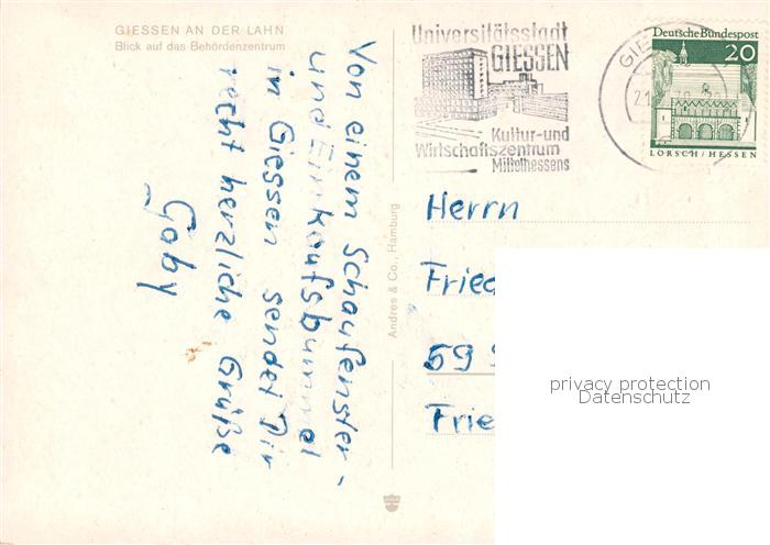 73829817 alte Postkarte Giessen Lahn Behoerdenzentrum Panorama postalisch gelaufen Erhaltung siehe scans [WerneD78] KatCode: 11110006531005