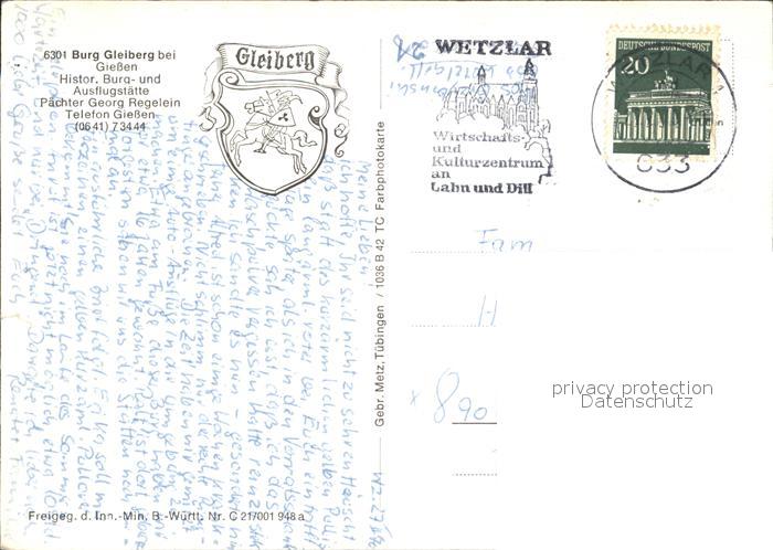 alte Postkarte Giessen Lahn Burg Gleiberg postalisch gelaufen Erhaltung siehe scans