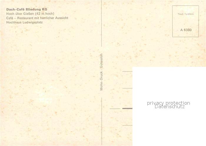 72859805 Giessen Lahn Dach-Cafe postalisch nicht gelaufen Erhaltung siehe scans [NatalD47] KatCode: 11110006531005