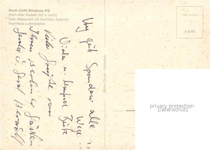 72858798 Giessen Lahn Dach-Cafe postalisch nicht gelaufen Erhaltung siehe scans [NatalD47] KatCode: 11110006531005