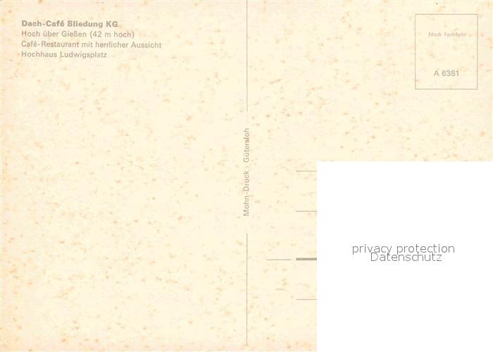 72858793 Giessen Lahn Dach-Cafe Bliedung KG Hochhaus postalisch nicht gelaufen Erhaltung siehe scans [NatalD47] KatCode: 11110006531005