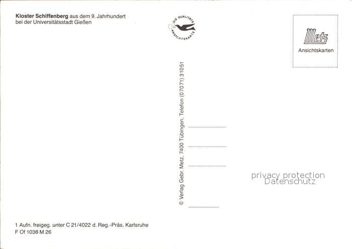 72414046 Giessen Lahn Fliegeraufnahme Kloster Schiffenberg postalisch nicht gelaufen Erhaltung siehe scans KatCode: 11110006531005