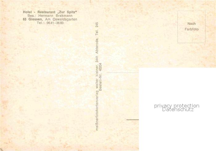 72748146 Giessen Lahn Hotel Restaurant Zur Spitz postalisch nicht gelaufen Erhaltung siehe scans [FriedD77] KatCode: 11110006531005